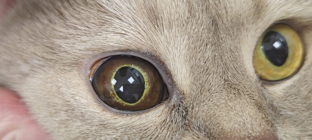 - Генетика: Гетерохромия часто связана с генетическими факторами. У белых котов и некоторых других пород, таких как охотничьи коты и турецкие, чаще встречается это состояние.