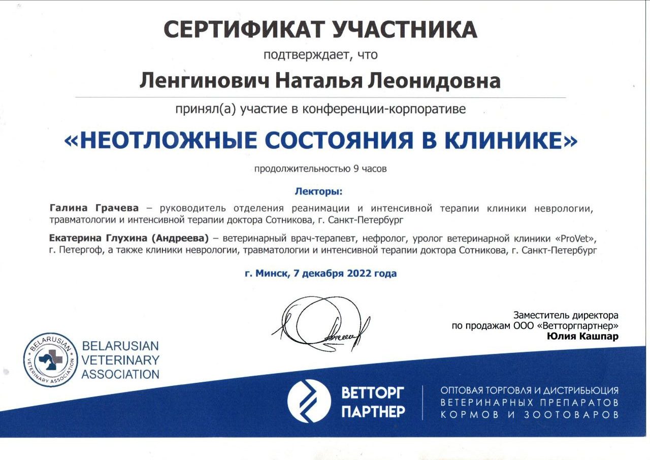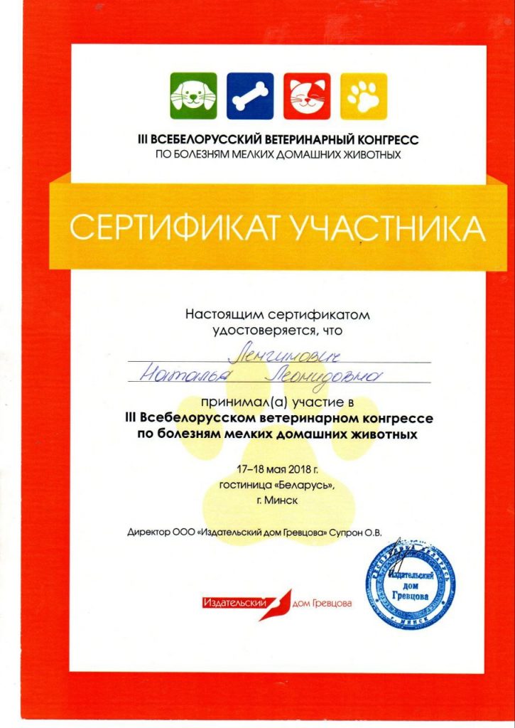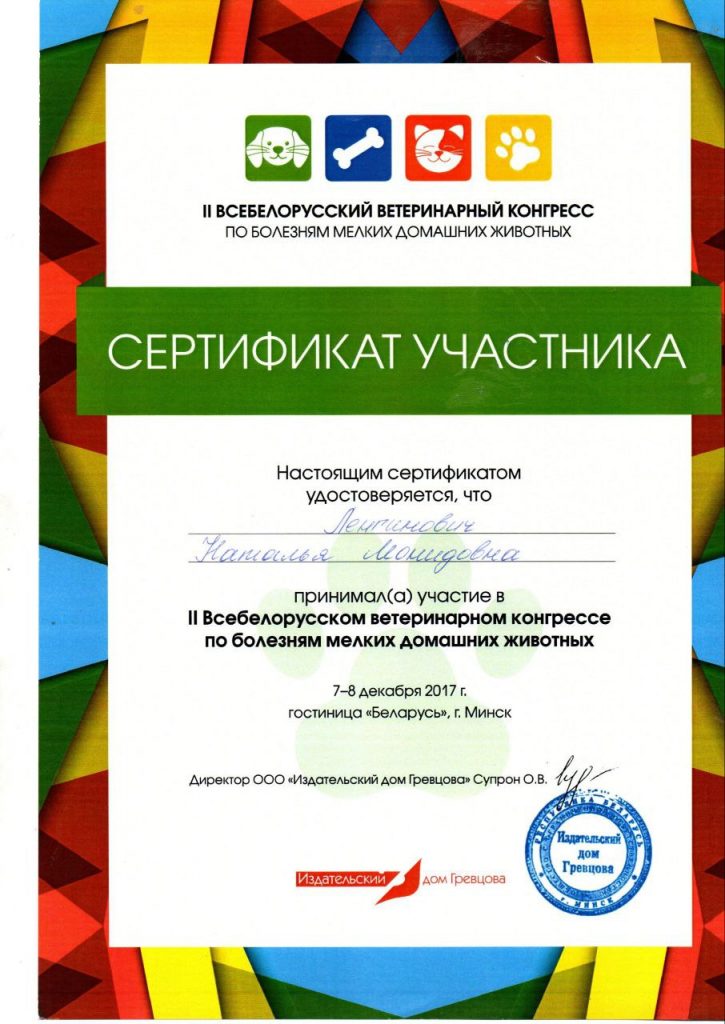 За время работы пройдено множество курсов и лекций по разнообразным темам. Участник 4х Белорусских Ветеринарных конгрессов.