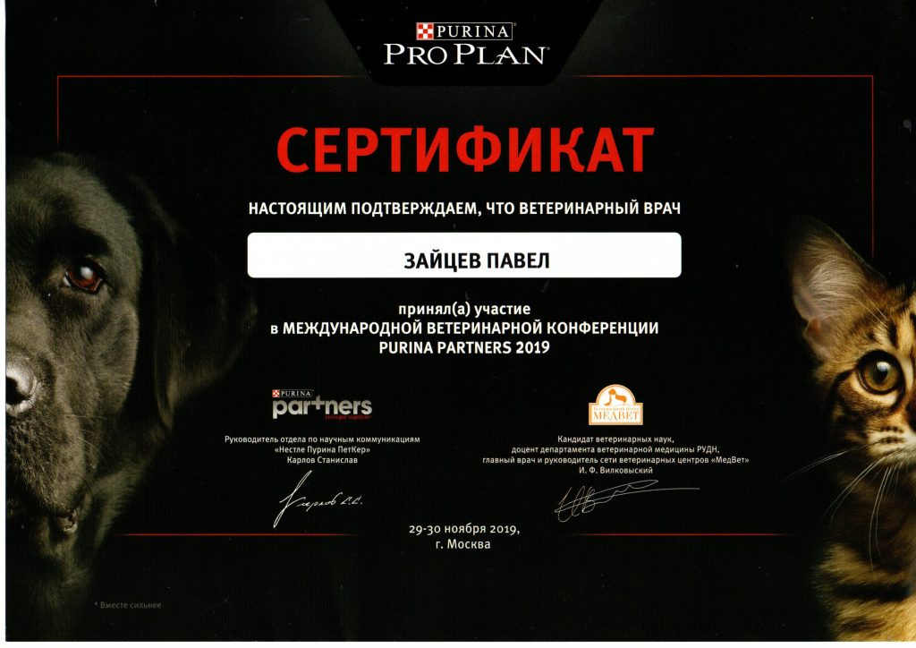 29-30 ноября 2019 года, г. Москва – принял участие в Международной Ветеринарной Конференции PURINA PARTNERS 2019.