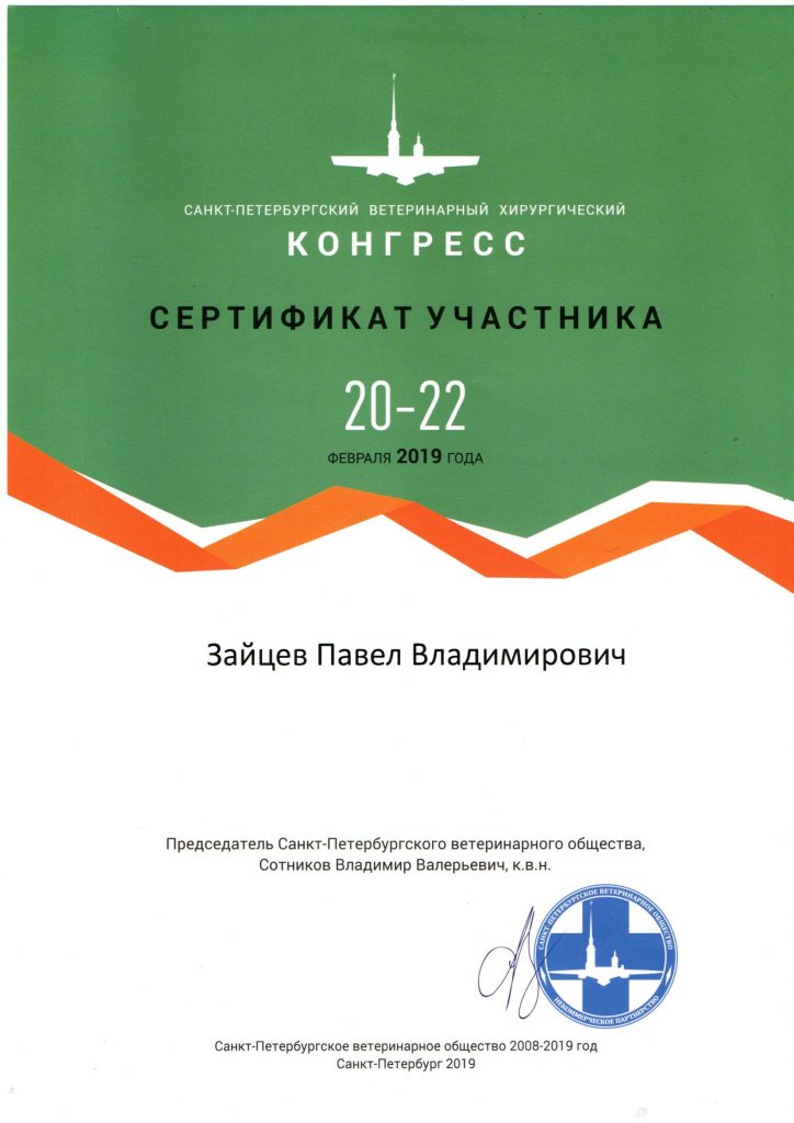 20-22 февраля 2019 года, г. Санкт-Петербург – принял участие в Санкт-Петербургском Ветеринарном Хирургическом Конгрессе.