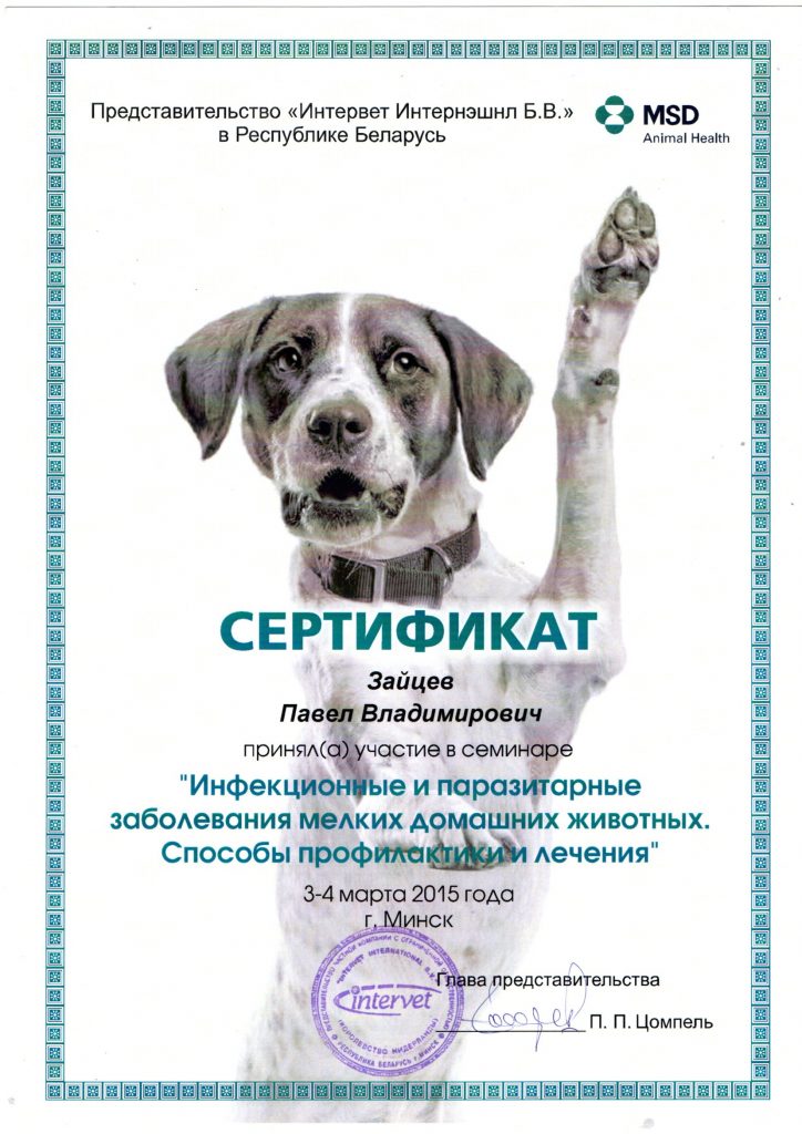 3-4 марта 2015 года, г. Минск — принял участие в семинаре «Инфекционные и паразитарные заболевания мелких домашних животных. Способы профилактики и лечения»