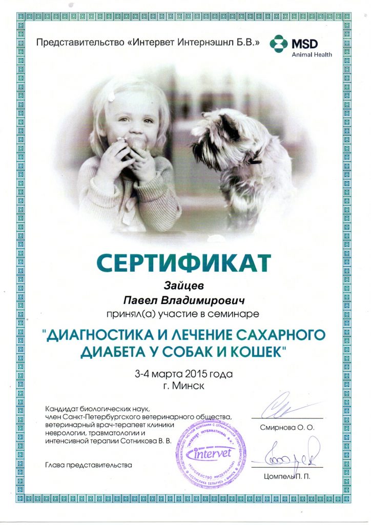 3-4 марта 2015 года, г. Минск – принял участие в семинаре «Диагностика и лечение сахарного диабета у собак и кошек»
